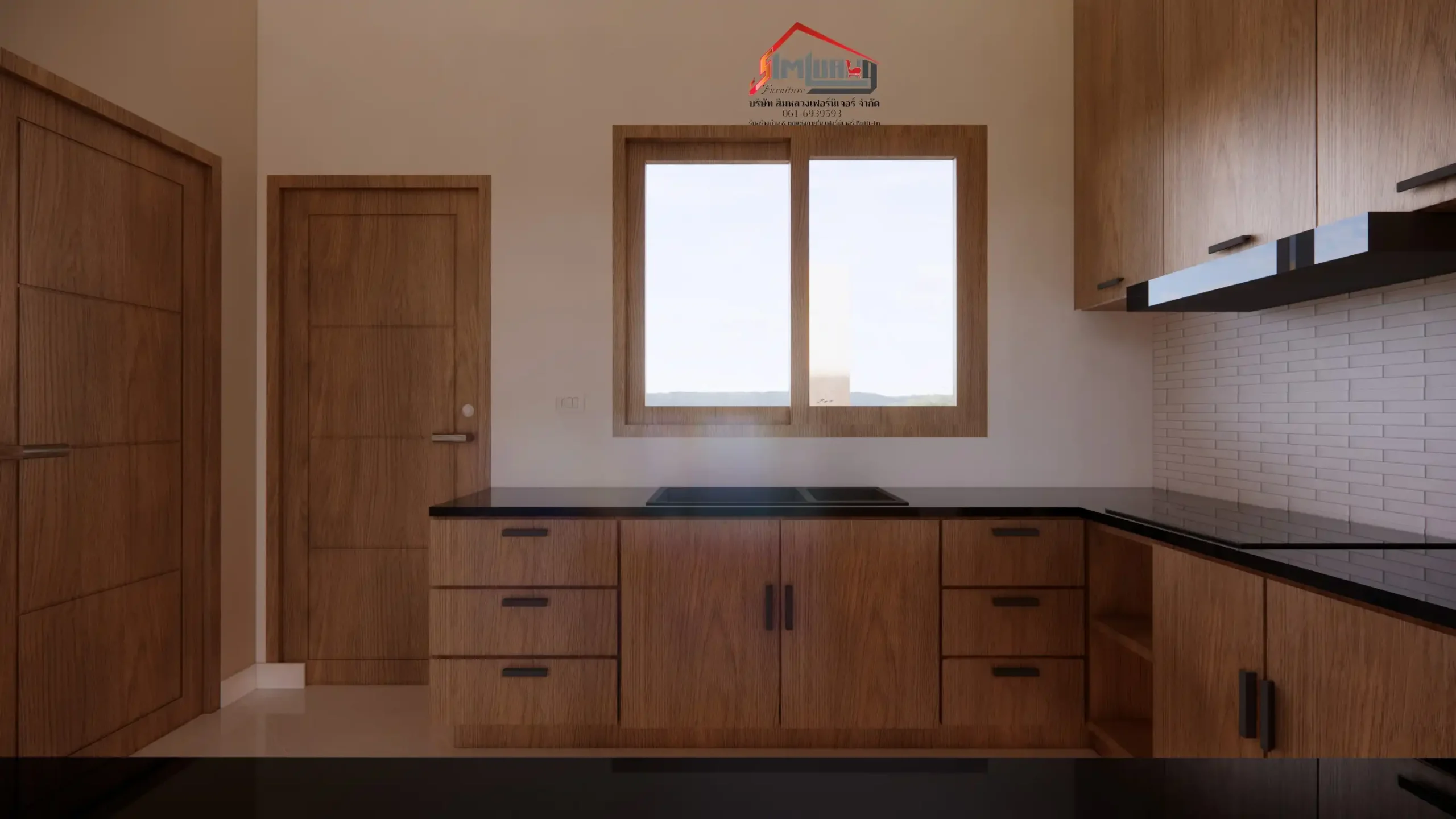 • งานบิลต์อินตู้และชั้นวางของ คุมโทนสีไม้ธรรมชาติ ผสมหน้าบานลูกฟักเซาะร่องสไตล์คลาสสิกแบบเรียบง่าย