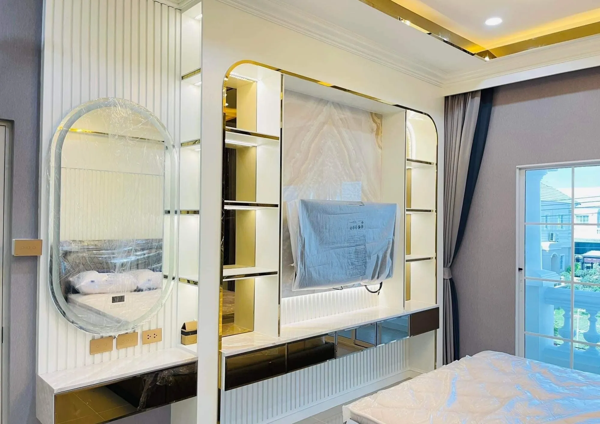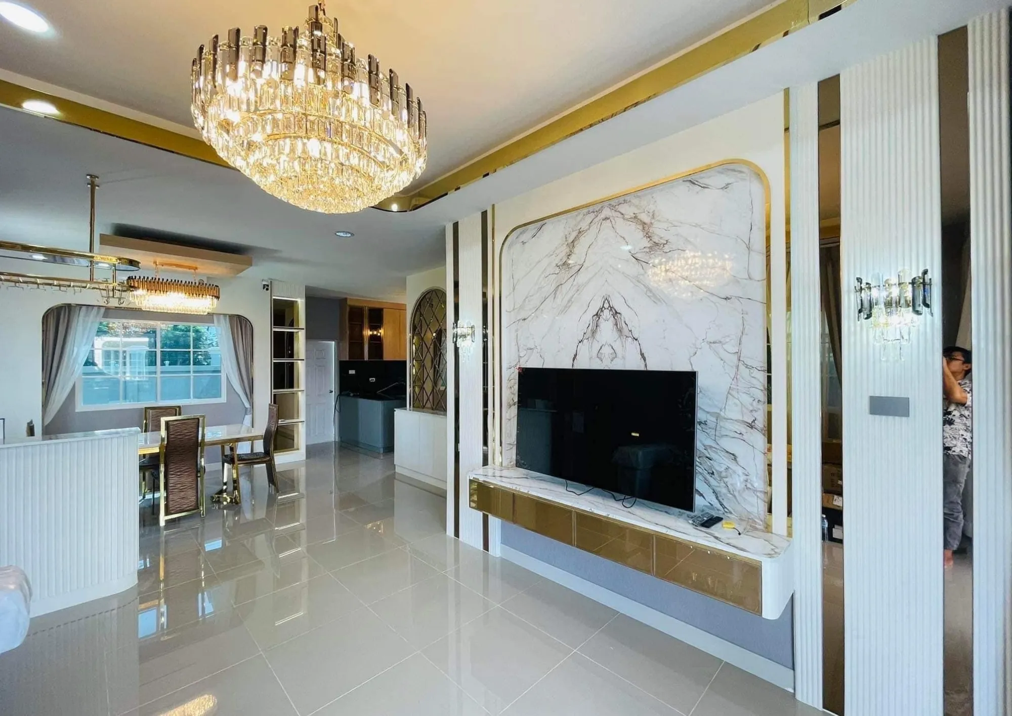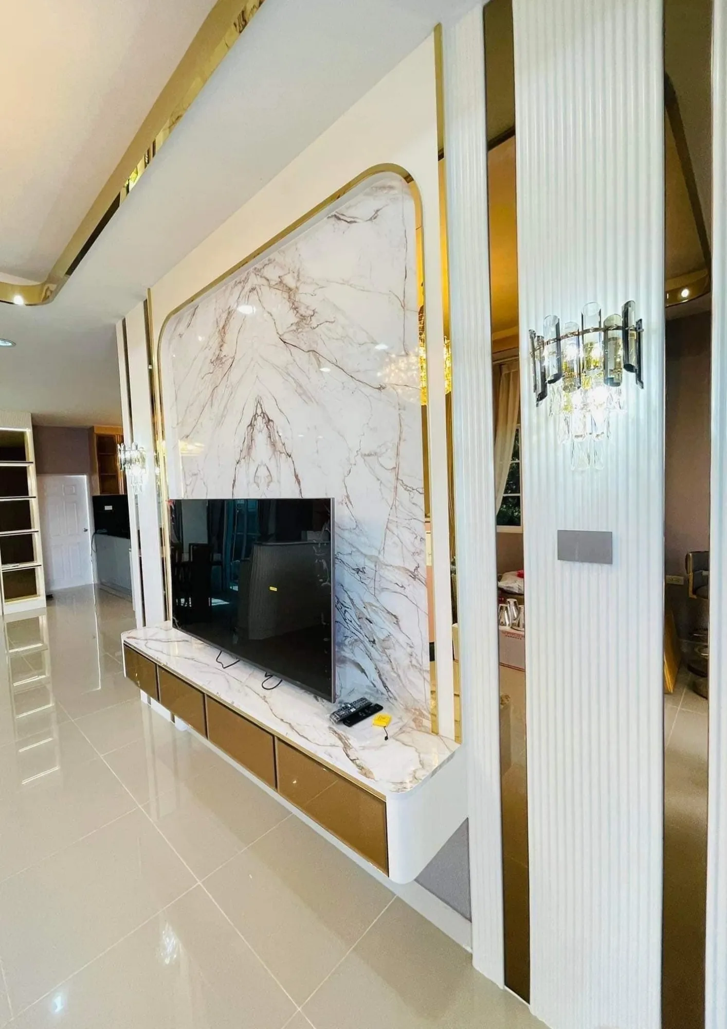 • งาน Built-in ผนังตกแต่งสไตล์ Modern Luxury พร้อมชั้นวางทีวีหินอ่อน