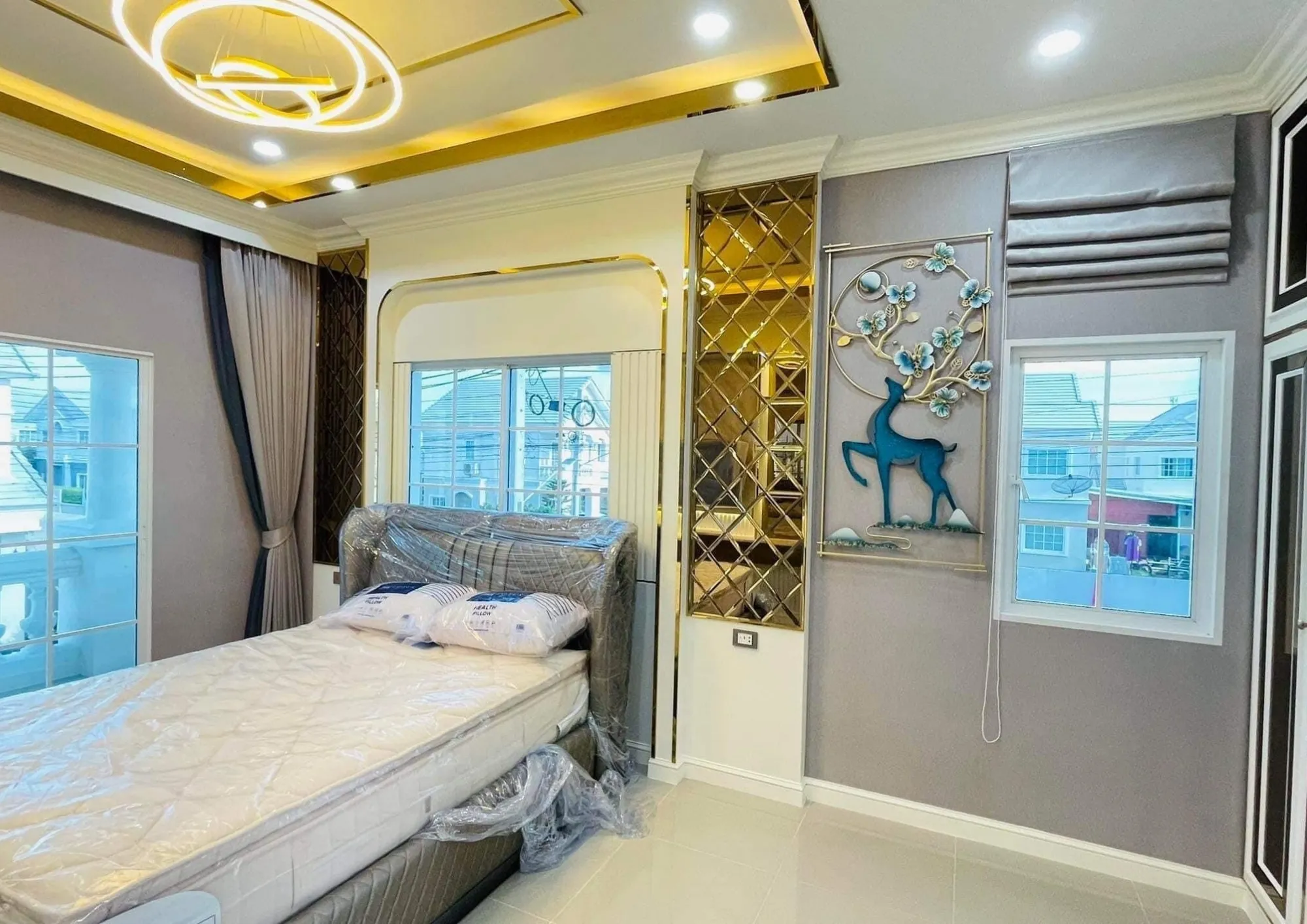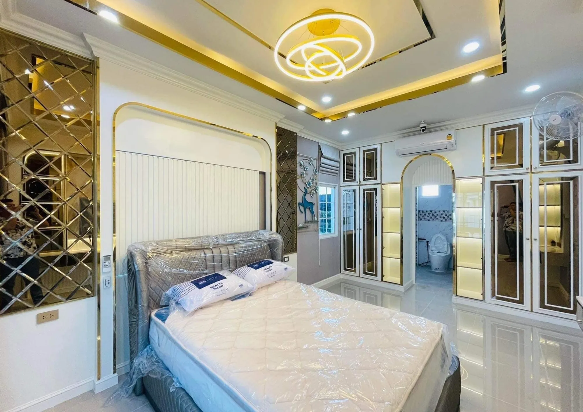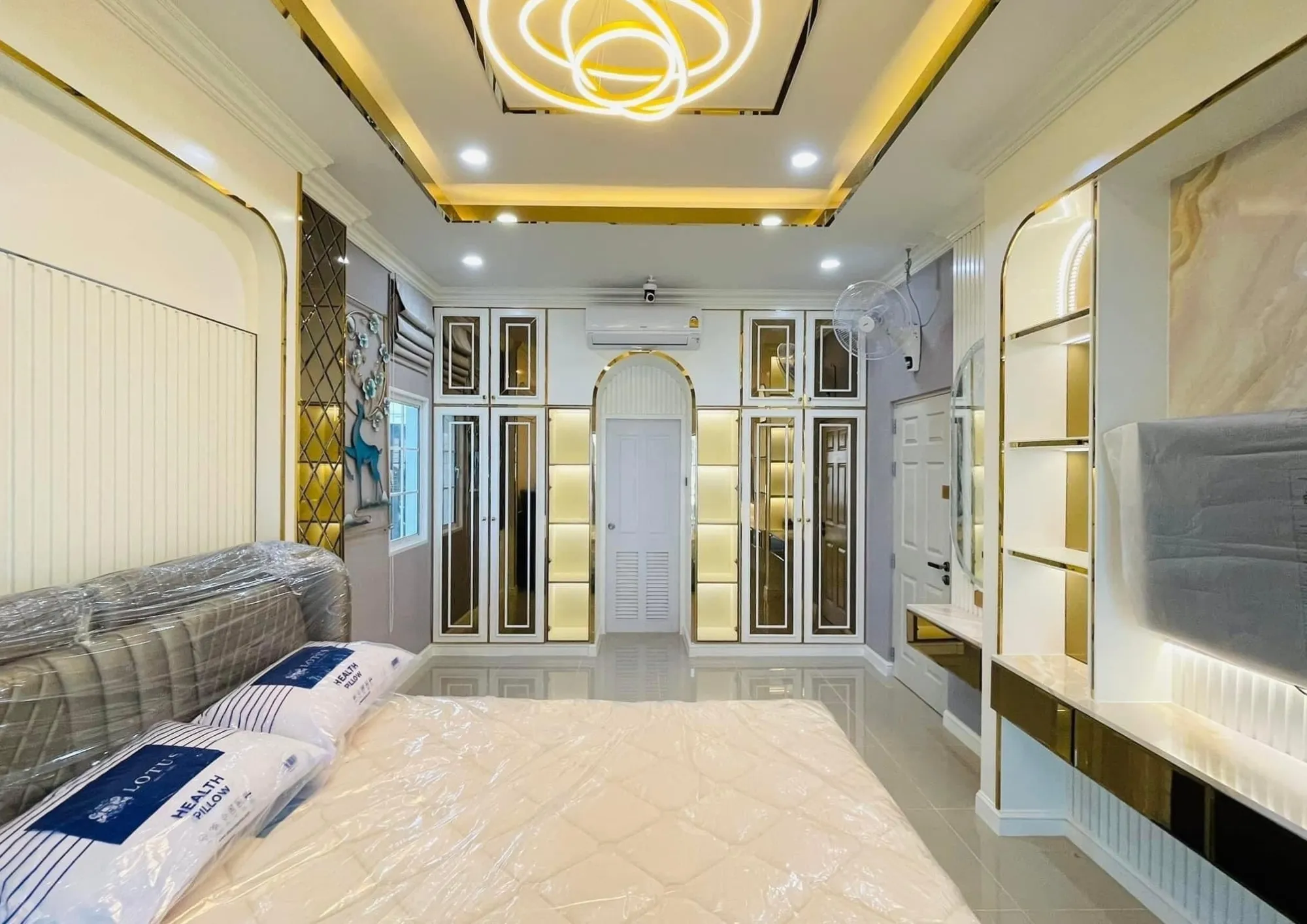 • งานออกแบบห้องนอนใหญ่ (Master Bedroom) เน้นความโปร่งและหรูหราด้วยกระจกเงา