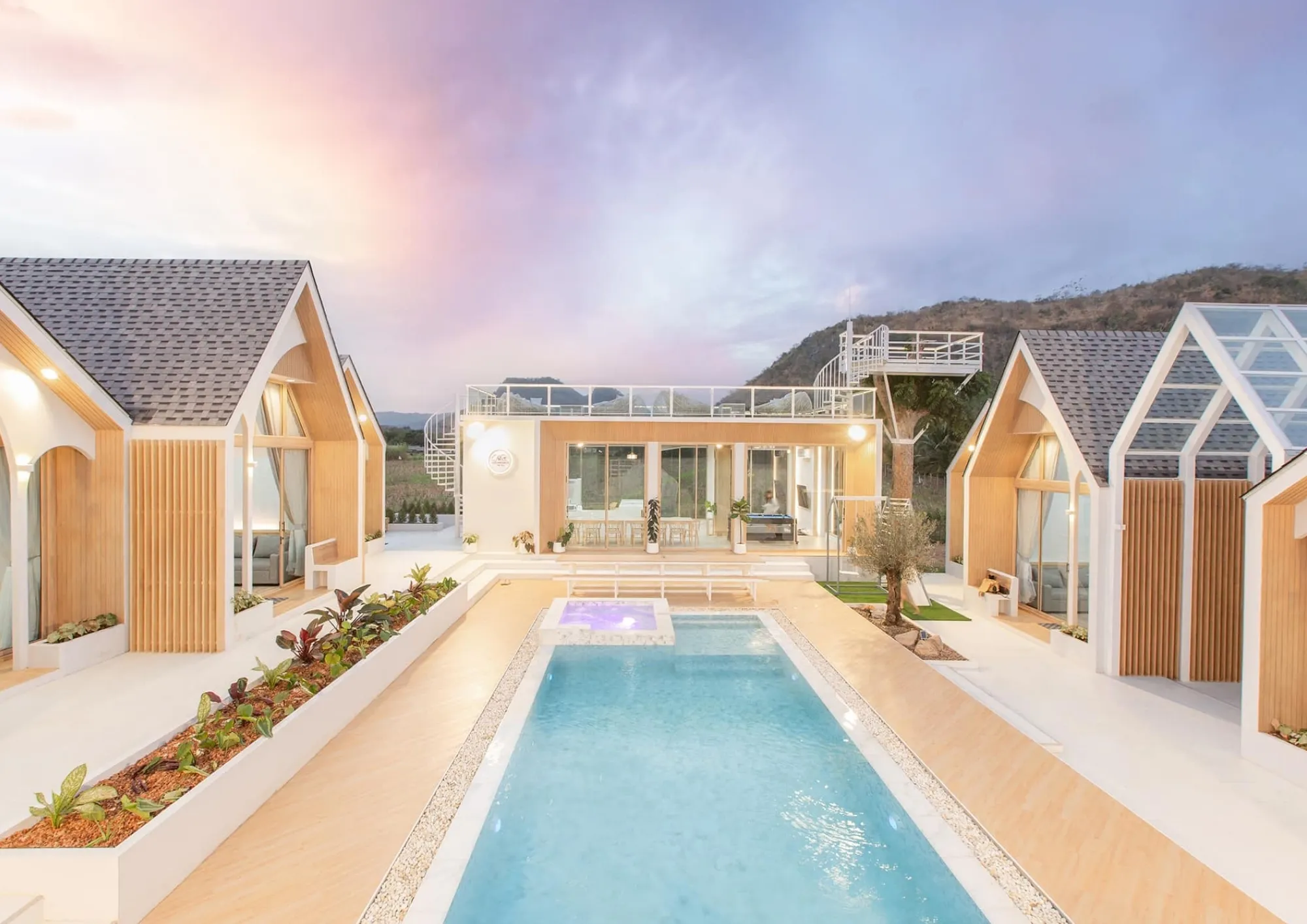 พูลวิลล่าสไตล์นอดิก ออกแบบเป็นพูลวิลล่าชั้นเดียวมีพื้นที่พักผ่อนครบ ทำกิจกรรมร่วมกันได้ทั้งบ้าน พร้อมชมวิวเขาแบบพาโนราม่าได้ทั้งในคลับเฮาส์และ Roof top ถ่ายรูปสวยทุกมุม